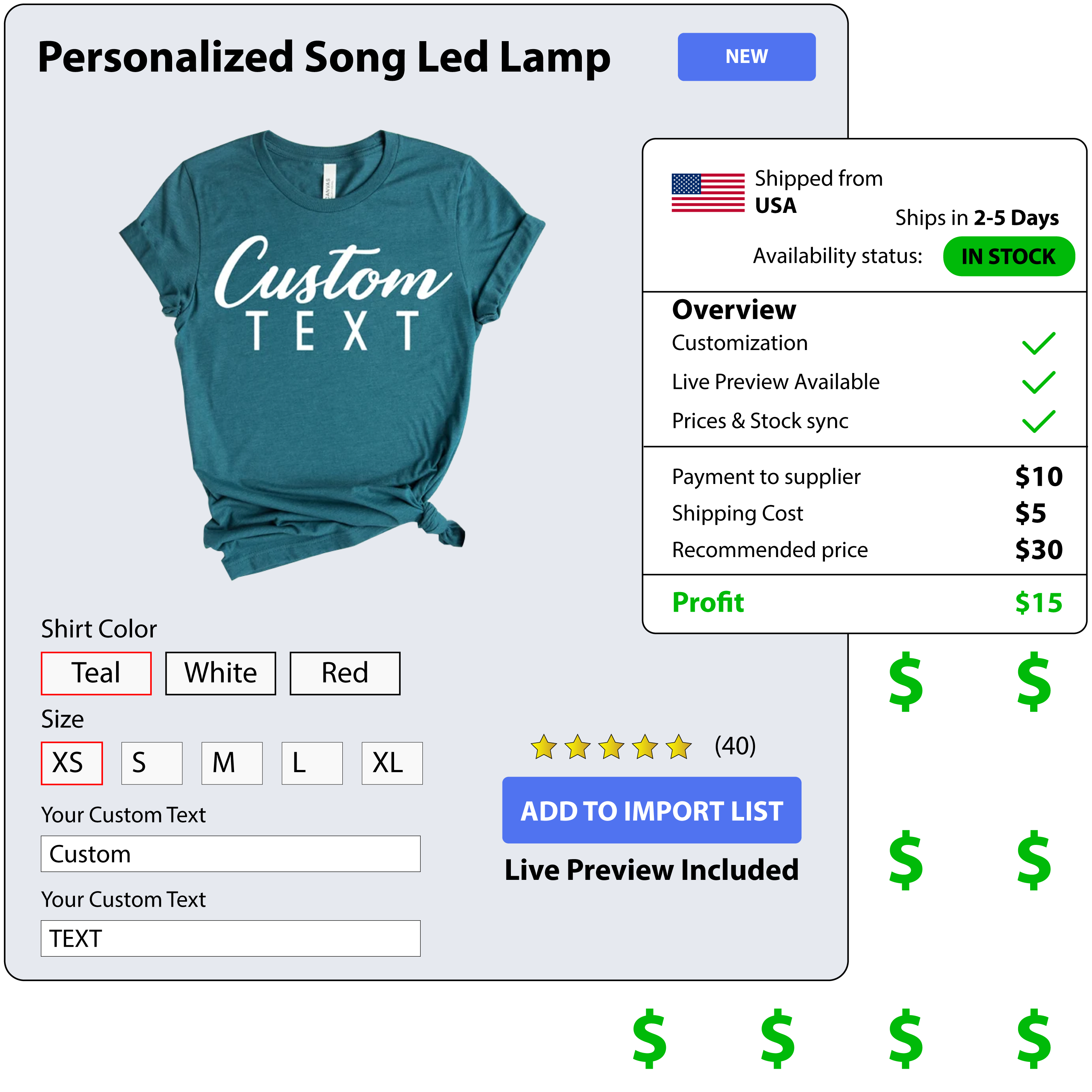 Customizable products are available for dropshipping right when you download the ZanVos App. We ensure quality so you can dominate your market.